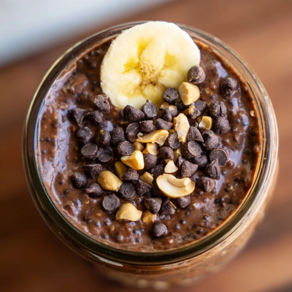 - This is where it gets fun. Throw on those mini chocolate chips, chopped peanuts, or whatever fruit speaks to you. Serve it straight from the jar.