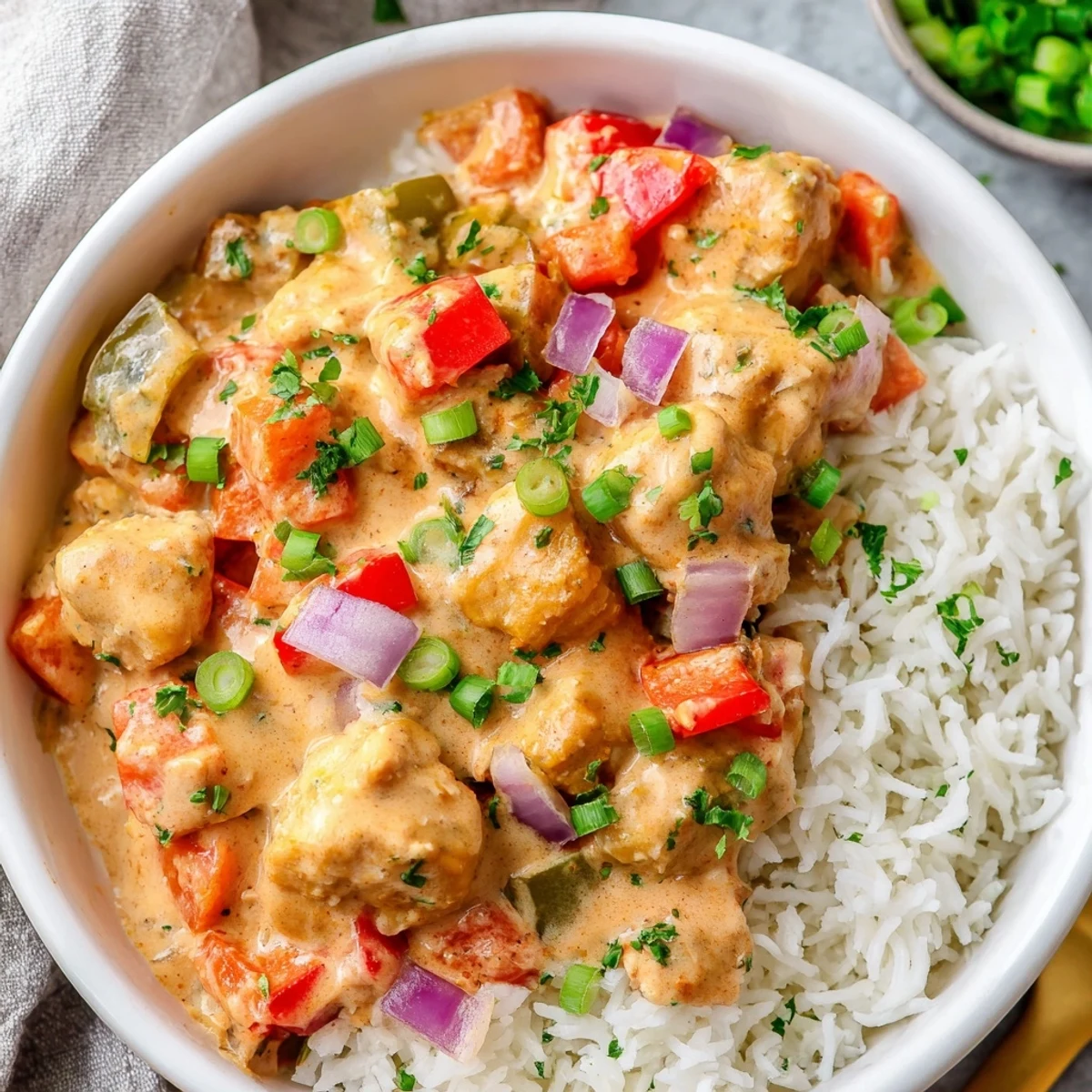 This hearty bowl features golden chicken pieces seasoned with authentic Cajun spices, seared until caramelized then simmered in a luxurious sauce of heavy cream, cream cheese, and Parmesan. Colorful bell peppers and aromatic onions add sweetness and crunch, balancing the fiery seasoning. Everything comes together in just 40 minutes, making it perfect for busy weeknights when you crave something bold and satisfying.