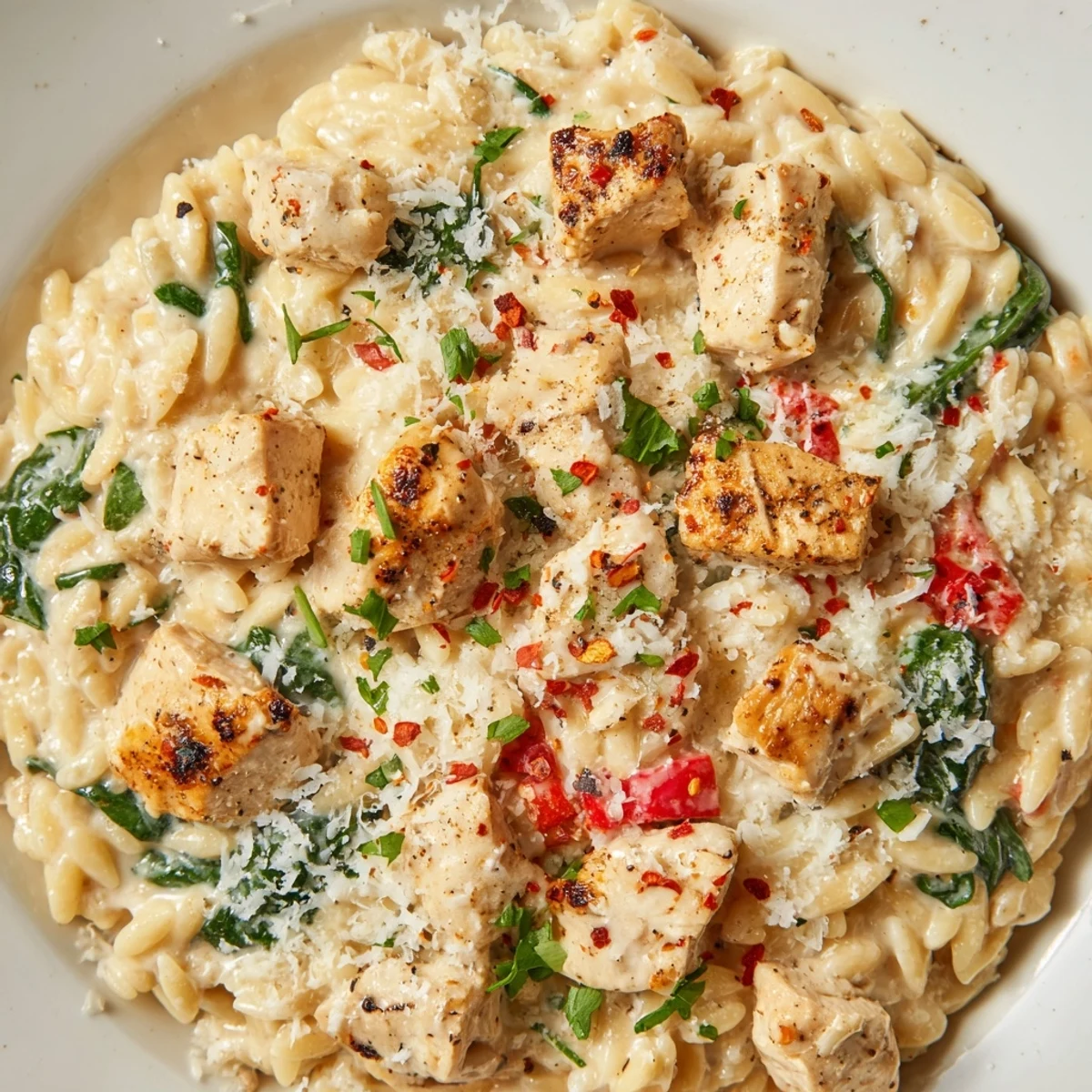 This satisfying one-pot dish combines juicy seasoned chicken with orzo pasta in a luscious cream sauce. The Cajun spices bring warmth and depth, while the orzo cooks directly in the skillet, absorbing all those flavorful pan juices. Ready in under an hour, this meal delivers restaurant-quality comfort food with minimal cleanup—perfect for busy weeknights when you want something hearty and delicious.