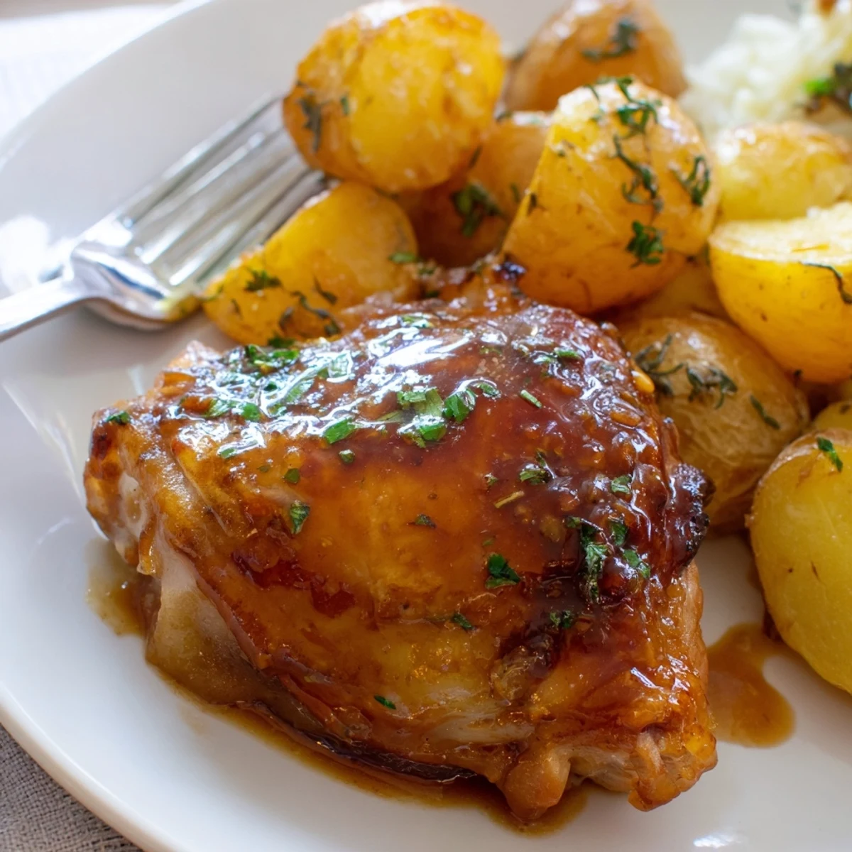 This recipe became a staple in our apartment during winter because there's something about that combination of crispy roasted potatoes and sticky glazed chicken that just feels like a hug. My partner would actually text me from work asking if 'the chicken' was on the menu for dinner.