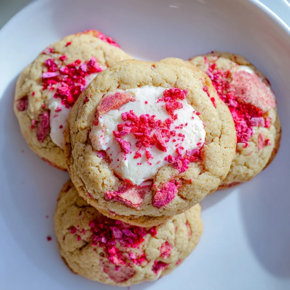 Last winter I brought these to a cookie swap and watched my friend's face light up when she bit into the first one, her eyes widening as the creamy center hit her tongue. She's not usually a dessert person, but she ate three and sheepishly asked to take the remaining ones home. Something about that bright strawberry flavor cutting through the rich cheesecake filling makes these cookies feel special without being fussy or intimidating.