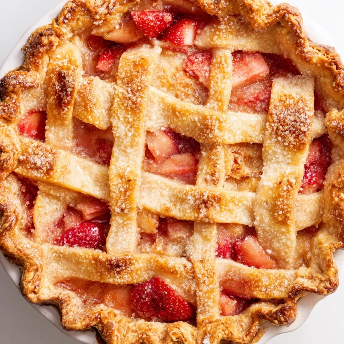 While strawberry rhubarb is the classic combination, this lattice crust technique works beautifully with whatever fruit is in season throughout the year. In summer, try peaches mixed with raspberries or blueberries with a hint of lemon zest. Fall welcomes apples with cranberries or pears with ginger. Winter calls for frozen berries or even a citrus curd filling that feels bright and cheerful when the world outside is gray and cold. The lattice top becomes a canvas for whatever the seasons offer, and the method remains the same.